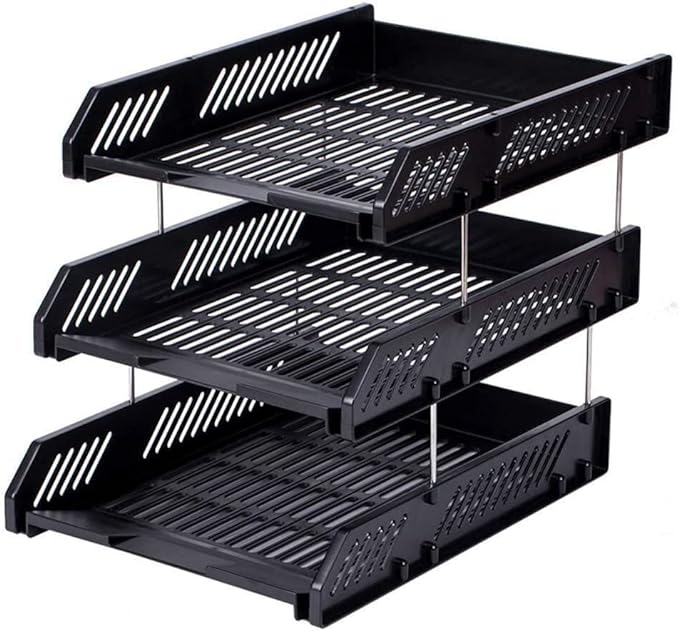 FRENYEAR Plastic Office Stationery 3 Layer Plastic Office Files/Letter/Document Desk Organizer File Rectangular Tray, Basket, Black